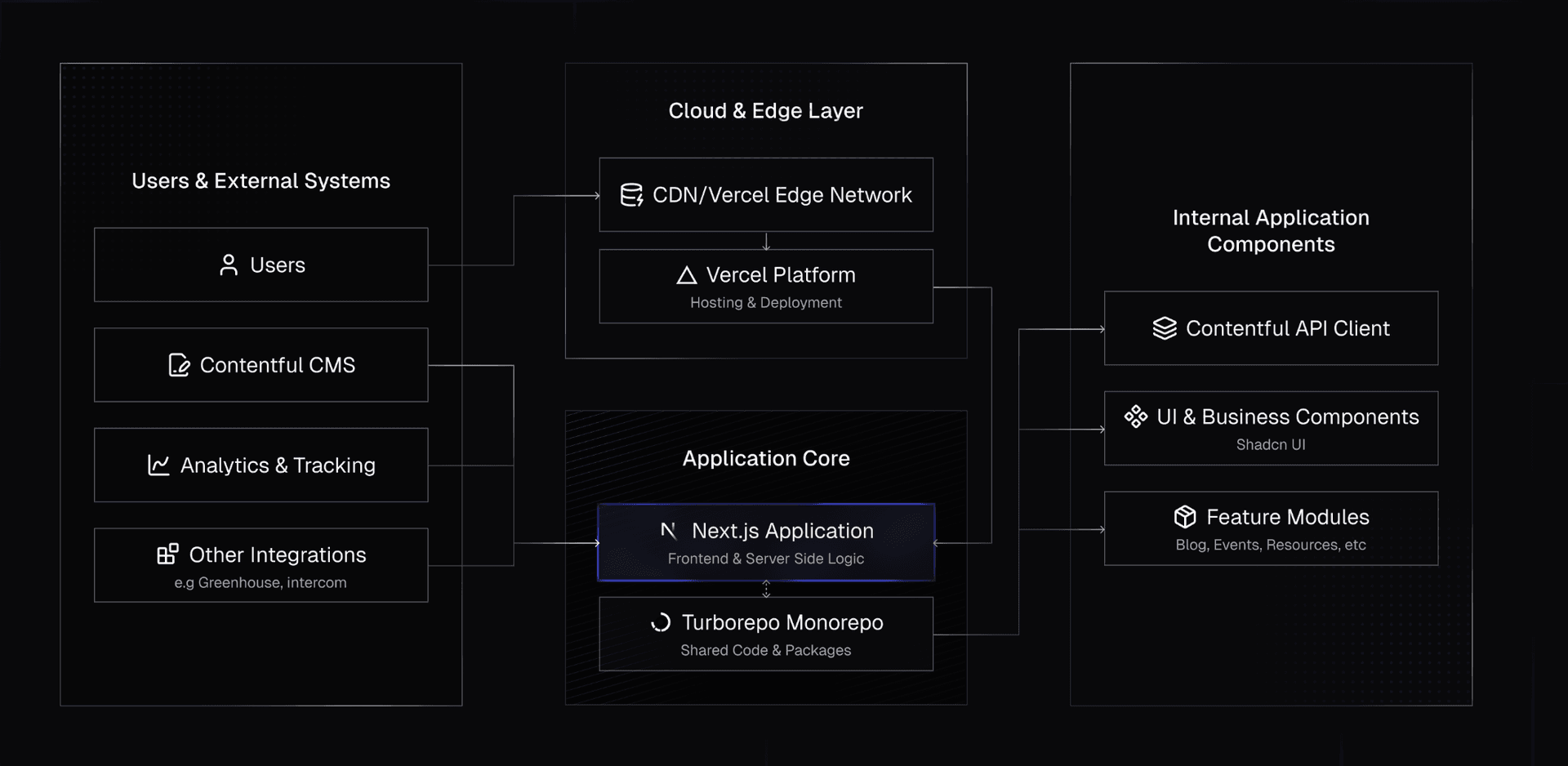 To modernize their marketing site, they partnered with Roboto Studio to migrate off their legacy solution and outdated version of Next.js. The goal: simplify the architecture, consolidate siloed repos, and bring content and form management into one unified system.