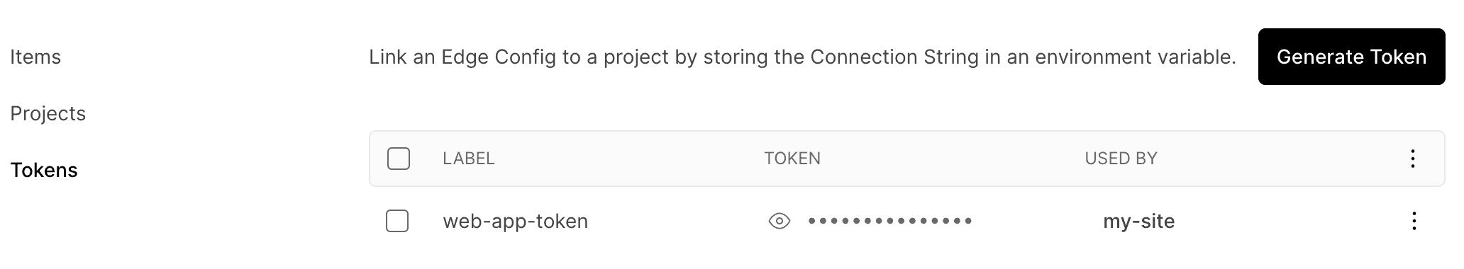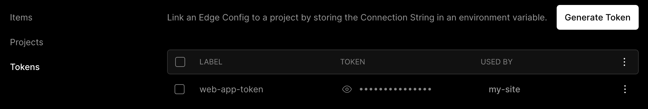 - Generate, copy, and delete tokens associated with this Edge Config