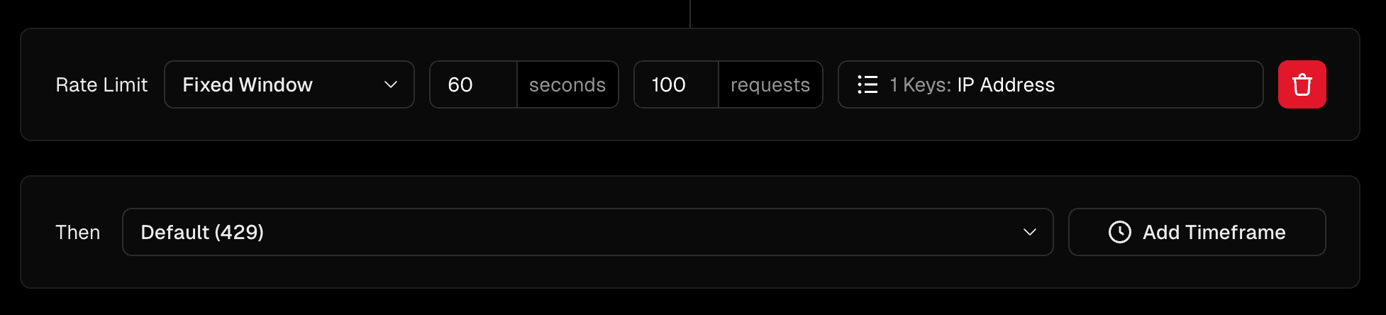 - Update the Time Window field as needed (defaults to 60s) and the Request Limit field as needed (defaults to 100 requests)