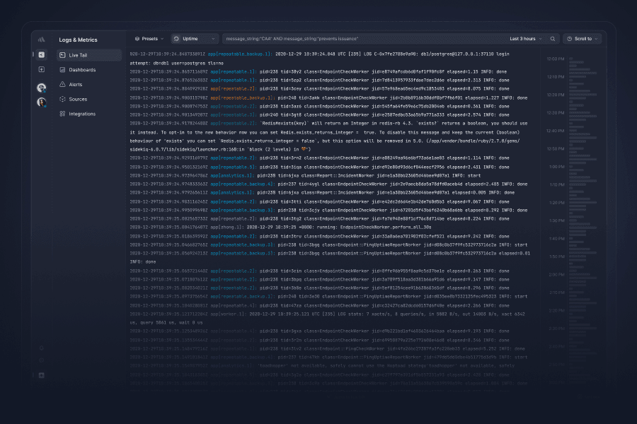 Collect logs across your stack with SQL-compatible structured logging at an unbeatable price. Start collecting logs from your Vercel projects in minutes.