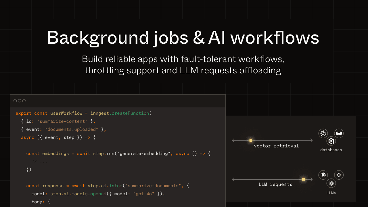 Whether you're building AI workflows, background jobs, or feature-specific workflows (e.g., email campaigns), Inngest has you covered with its low-latency workflow engine, which handles over 100 million daily executions.