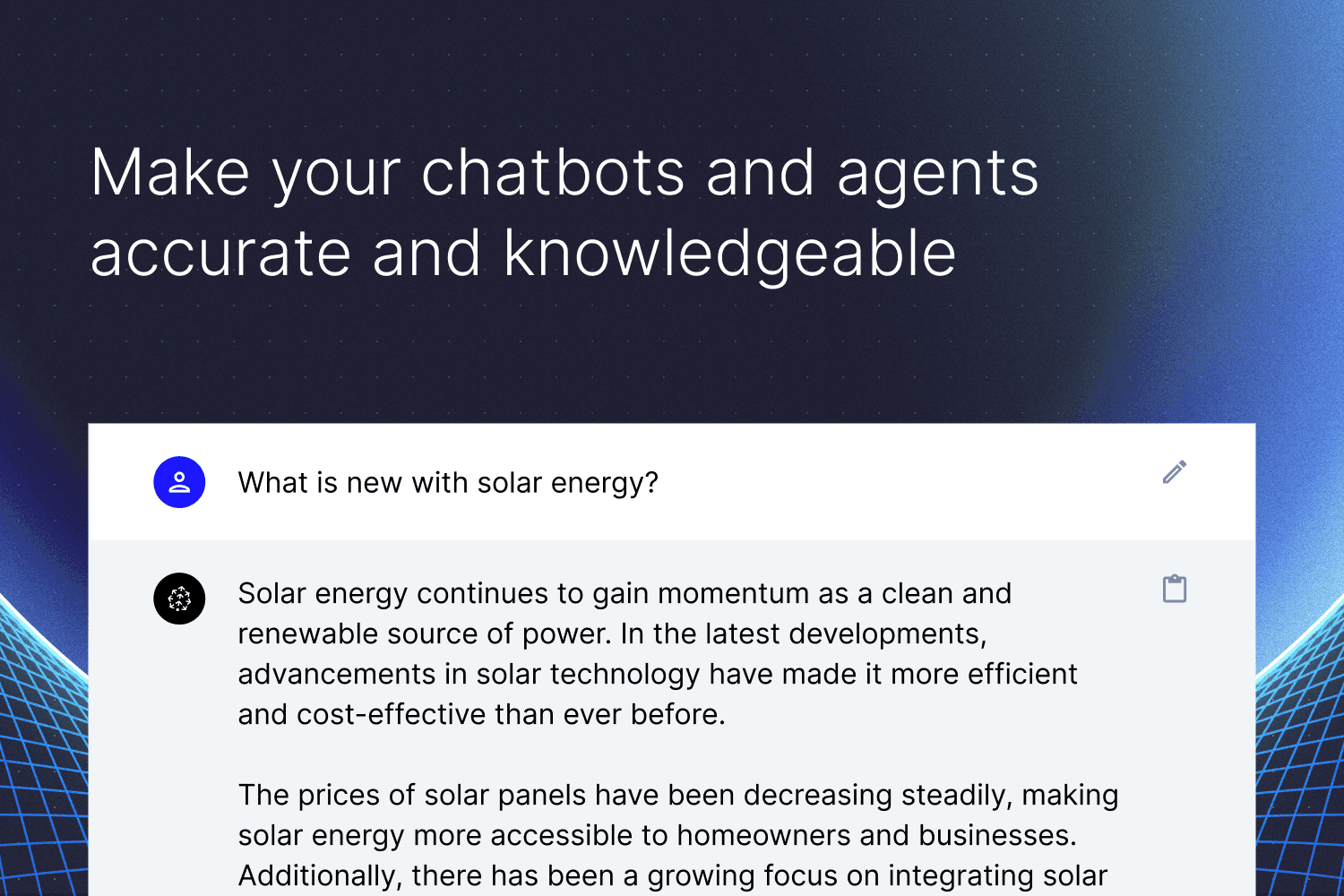 Pinecone provides the long-term memory for your Vercel AI projects. Using Pinecone with Vercel enables you to quickly set up and authenticate a connection to your Pinecone data/indexes, and then easily scale to support billions of data points. Get started for free with our Starter plan or choose a paid plan to support your production use cases.