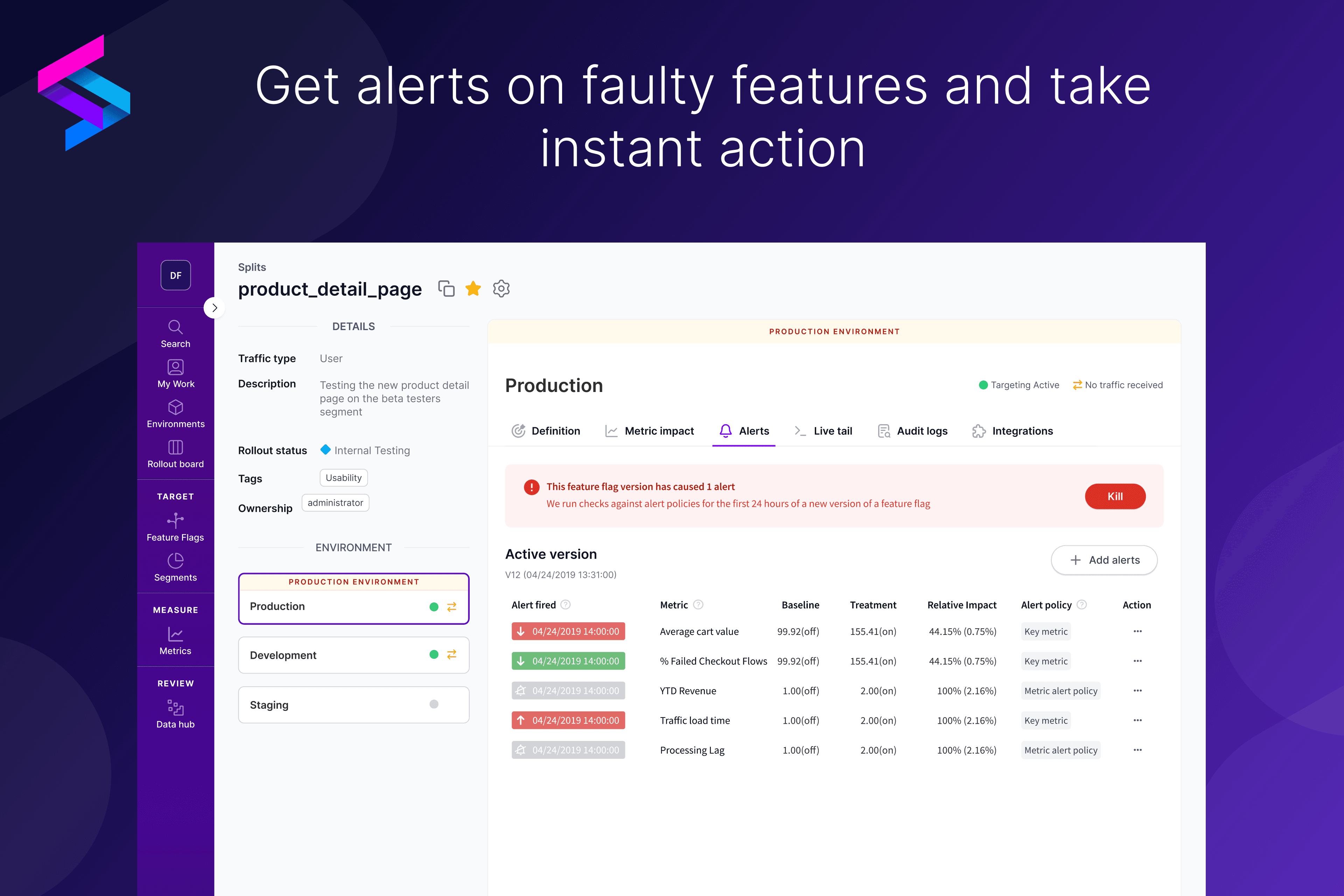 Pair the speed and reliability of Split’s feature flag with data to safely launch your releases and experiments.