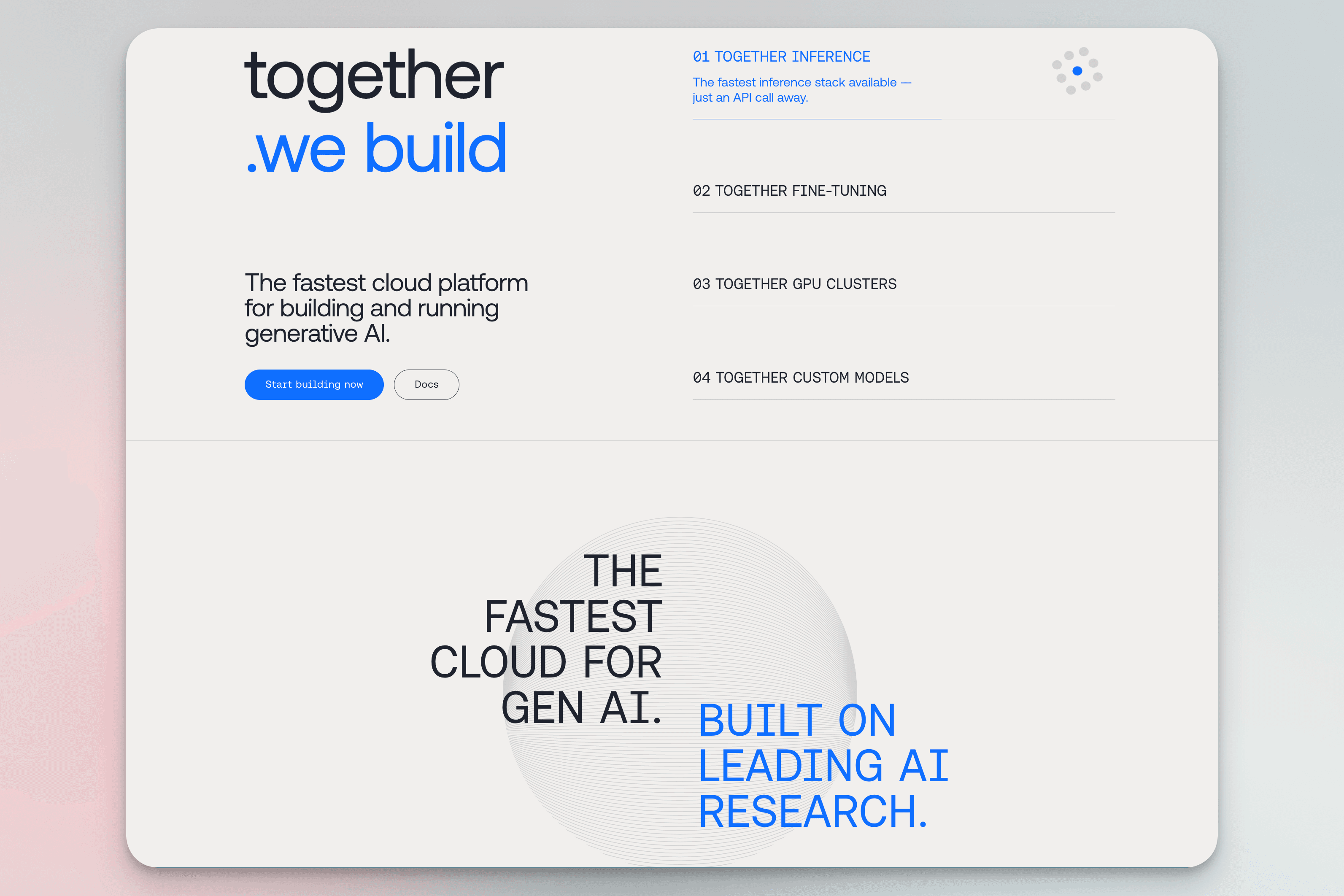 Together AI is the fastest cloud platform for building and running generative AI.